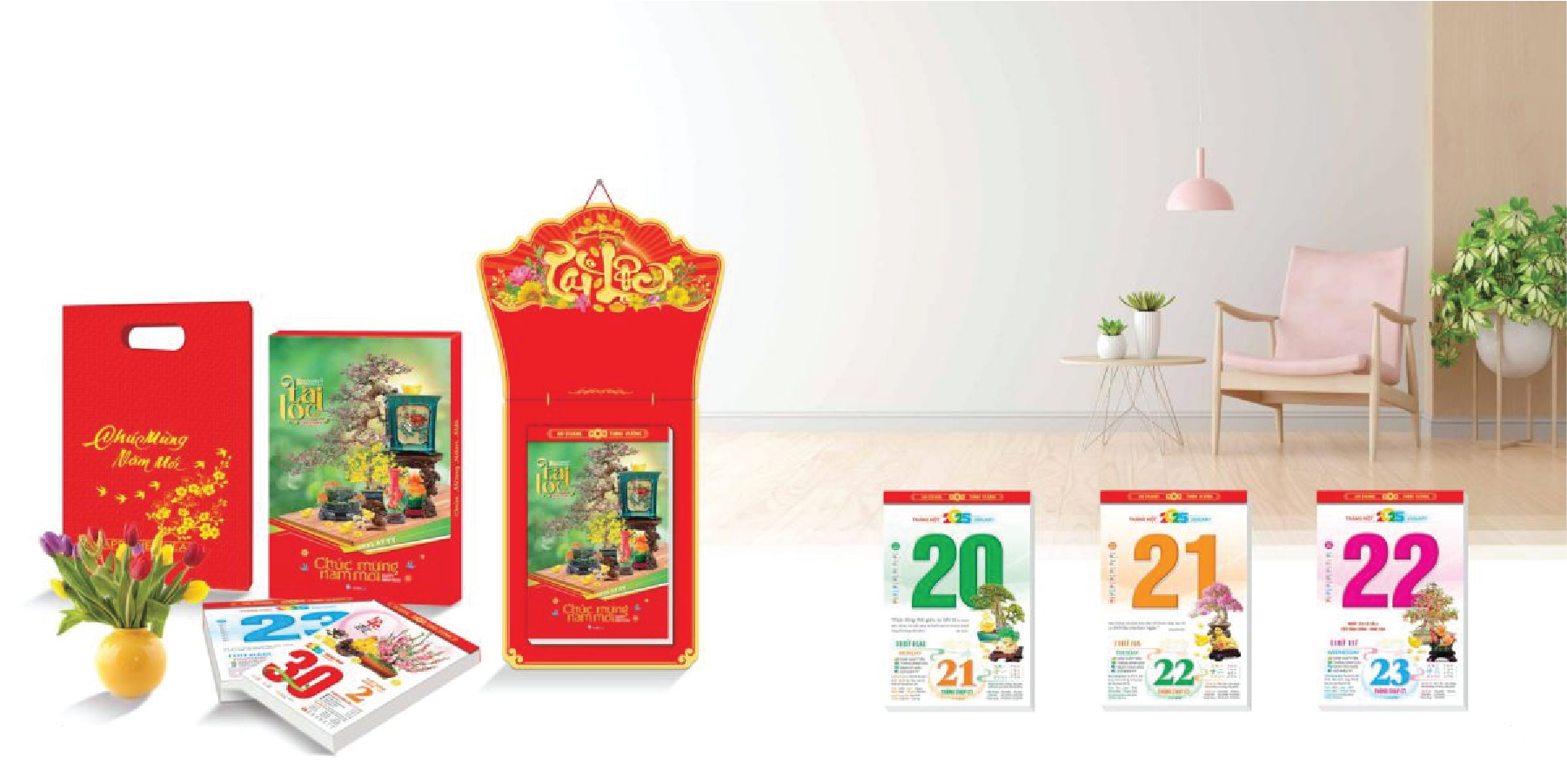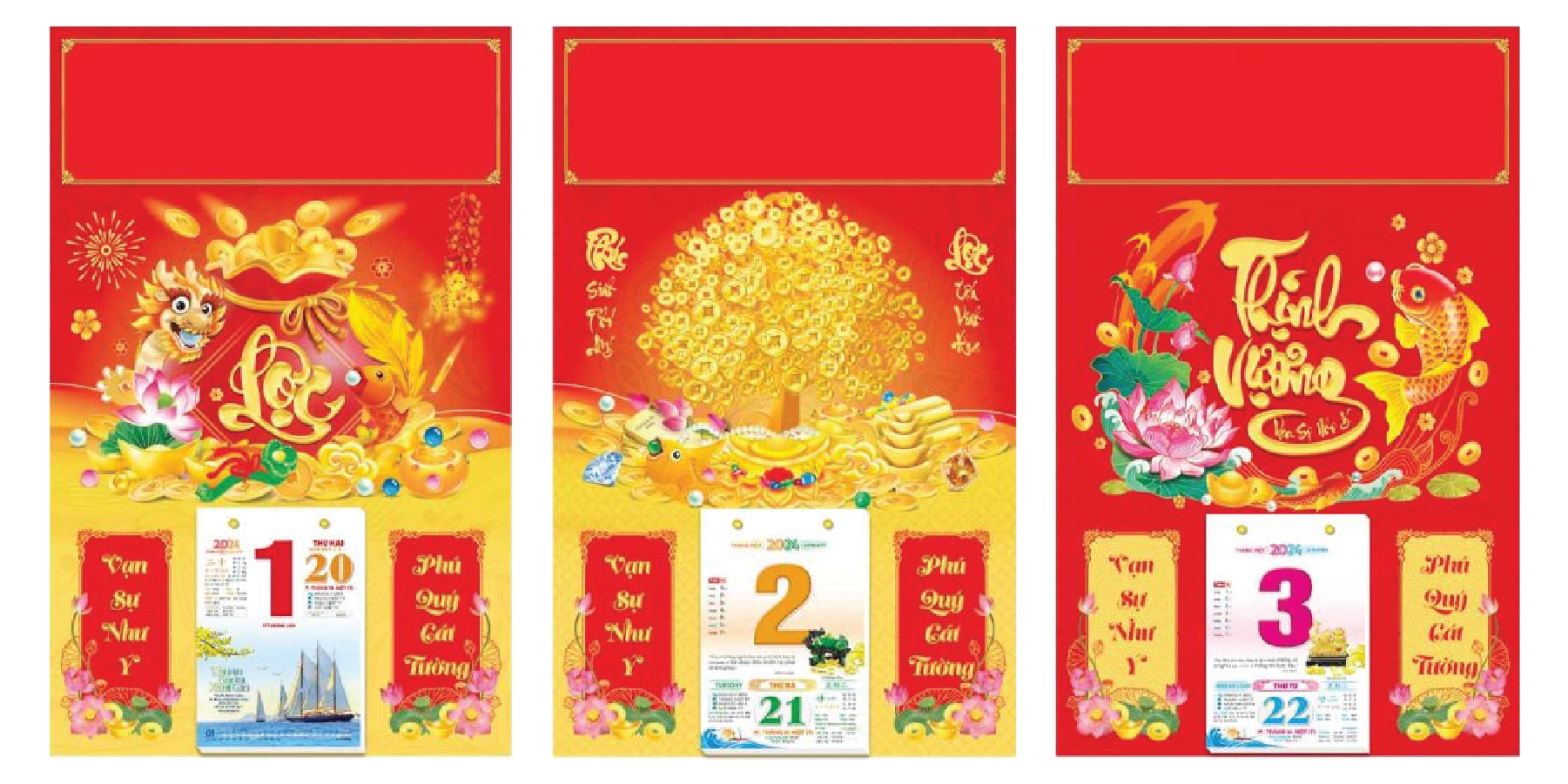 Là phần cố định ruột lịch, có thể làm từ giấy cứng, bìa carton ép, gỗ MDF hoặc kim loại. Đế thường được thiết kế trang trí đẹp, phù hợp làm quà tặng dịp Tết.